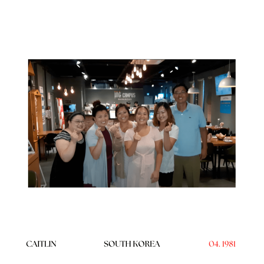 When I was walking around South Korea with a group, I just felt really comfortable. Everyone was super nice and I was staying with host families and some of them even were apologizing for how it was back then in the 80s and were like ‘oh we’re so sorry that our country was sending all these kids out’. They were being really nice and it was nice.